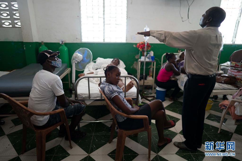 這是8月18日在海地震中附近的萊凱一家醫(yī)院拍攝的接受治療的民眾。