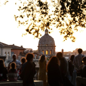 4月21日,人们在意大利罗马欣赏日落。