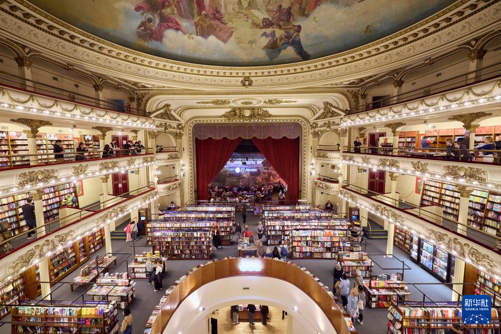 这是4月21日在阿根廷布宜诺斯艾利斯拍摄的雅典人书店内景。