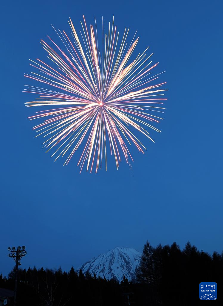 当日,“绝景花火”烟花大会在日本山梨县南都留郡鸣泽村举行。