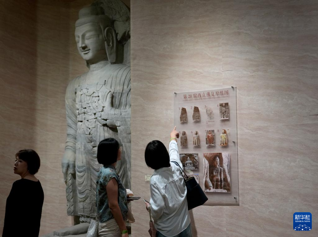 10月9日,“云海相望——云冈石窟艺术特展”在位于上海市虹口区的趣看美术馆举行开幕式。展览采用“双展区”布展模式,汇聚云冈文物、3D复原石窟、当代艺术作品,还包含VR交互体验和原创数字艺术展演等。展览将于10月10日起向公众开放,并展至2026年3月26日。