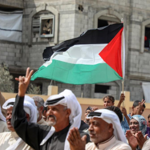 10月9日,在加沙地带中部代尔拜拉赫,巴勒斯坦民众在获悉加沙停火协议的消息后庆祝。