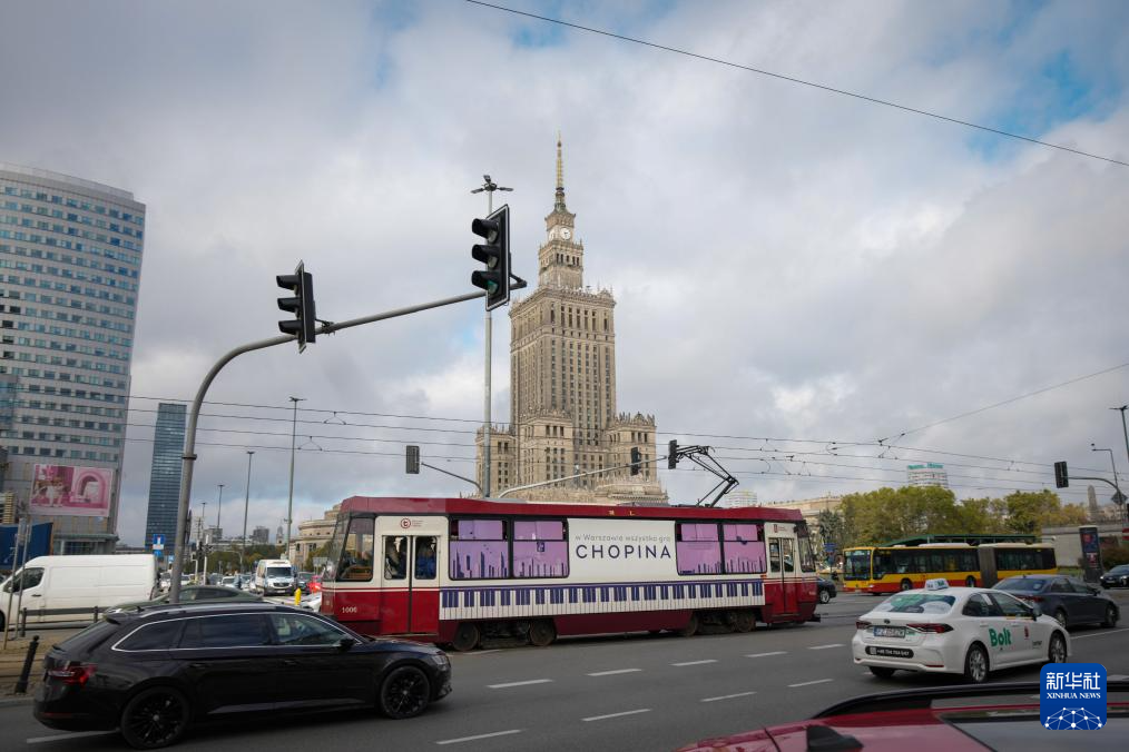 10月9日,一辆“肖邦电车”驶过波兰华沙市中心。