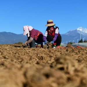 12月7日,农民在云南省丽江市玉龙县黄山街道的一处空地分拣、晾晒中药材当归。