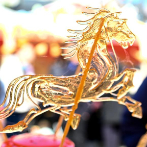 1月23日在江苏南京宝船厂遗址公园年货集市拍摄的马年糖画。