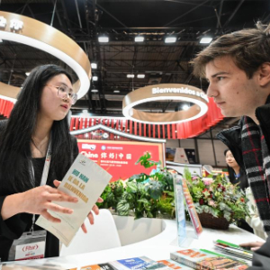 1月22日,在西班牙马德里,参观者在马德里国际旅游展上参观中国展台。