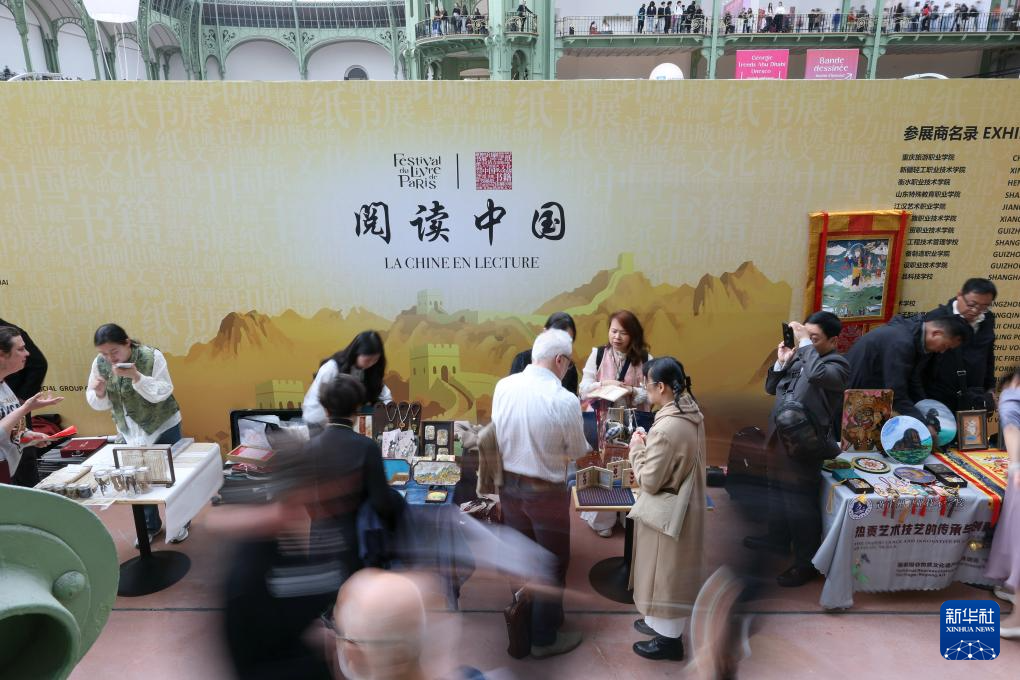 4月17日,在法国巴黎,人们在巴黎图书节中国展台参观。