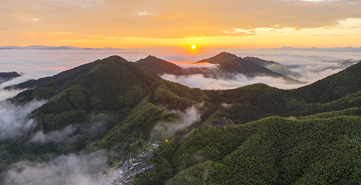夏日时节,位于安徽省黄山市黟县西递和宏村古村的传统徽派建筑沐浴在朝霞之中,美如画卷。