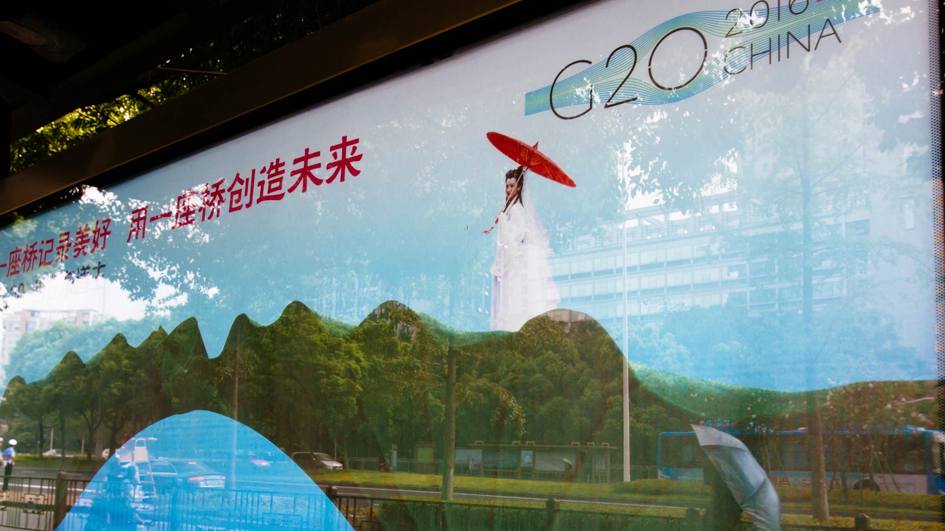 8月26日,行人走過杭州濱江區(qū)一處寫著“用一座橋記錄美好,用一座橋創(chuàng)造未來”的G20杭州峰會宣傳板。橋是杭州的文化符號。杭州自古多橋:許仙與白娘子相會在斷橋,蘇小小埋骨西泠橋,蘇堤六橋碧波掩映,拱宸橋連通運河兩岸,錢塘江大橋橫跨怒潮……古樸文雅輝映現(xiàn)代氣派,透出杭州融匯古今、靈動開放的底蘊。二十國集團(G20)領(lǐng)導(dǎo)人第十一次峰會將在杭州舉行。這次峰會的會標(biāo),也是一座橋的圖案。新華社記者張鋮攝