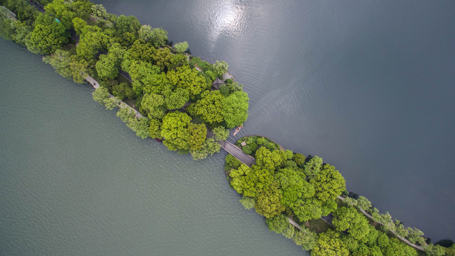 這是4月11日航拍的西湖景區蘇堤。2001年開始,杭州按“申遺”目標,對西湖進行了全方位的保護和整治。西湖南線各大公園打通,形成“十里環湖景觀帶”。龍井八景修復,慧因高麗寺重現,南宋官窯博物館擴建,八卦田遺址得到保護,還有飛來峰石刻造像、雷峰塔遺址、龍井寺……(新華社記者 黃宗治攝 )