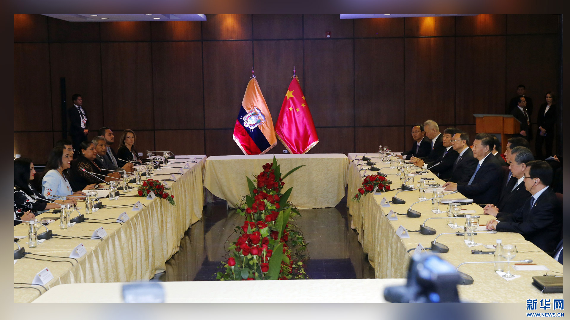 當地時間11月18日,國家主席習近平在基多會見厄瓜多爾國民代表大會主席里瓦德內拉。 新華社記者 鞠鵬 攝2016-11-19