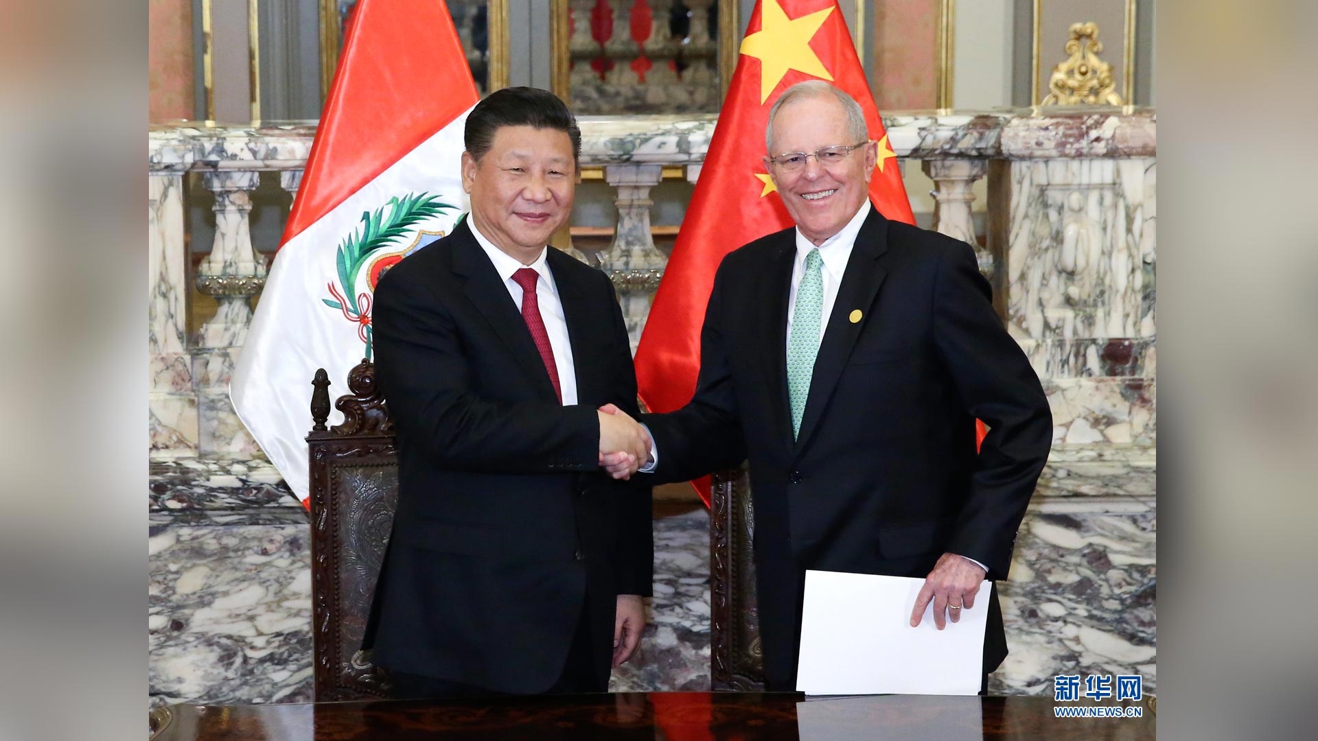 11月21日,國家主席習近平在利馬同秘魯總統庫琴斯基舉行會談。 新華社記者 鞠鵬 攝2016-11-23