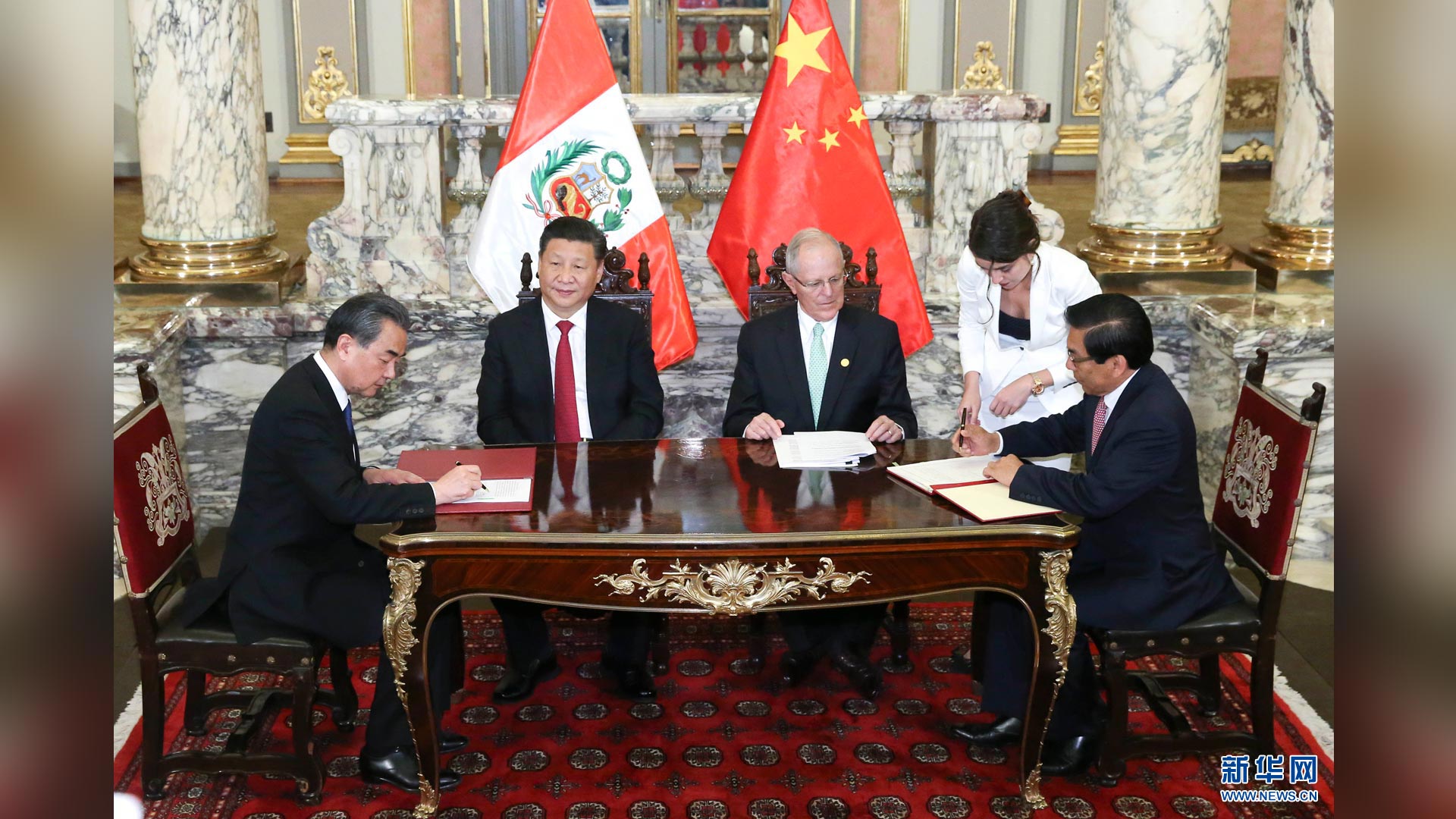 11月21日,國家主席習近平在利馬同秘魯總統庫琴斯基舉行會談。會談后,兩國元首見證《中華人民共和國政府與秘魯共和國政府2016年至2021年共同行動計劃》等文件的簽署。新華社記者 龐興雷 攝2016-11-23