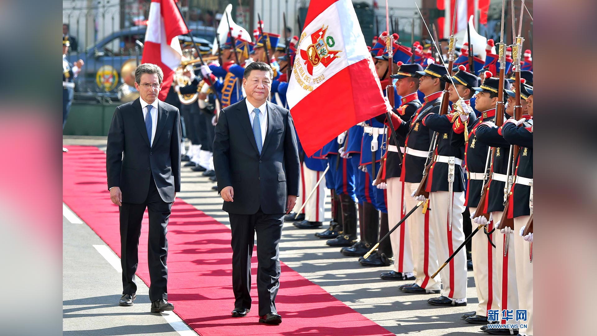 11月21日,國家主席習近平在利馬同秘魯總統庫琴斯基舉行會談。會談前,習近平出席庫琴斯基在總統府前廣場舉行的歡迎儀式。新華社記者 李濤 攝2016-11-23