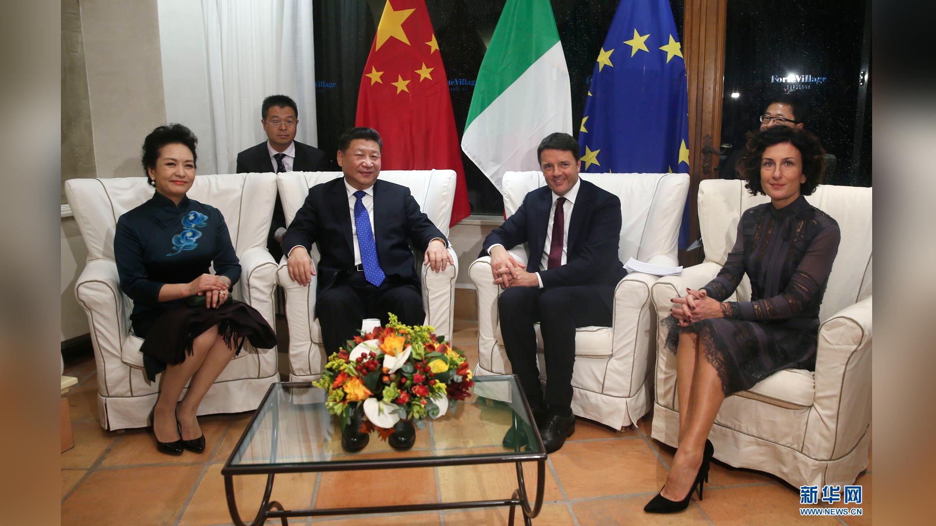 11月16日,國家主席習近平在意大利撒丁島會見意大利總理倫齊。 新華社記者蘭紅光攝2016-11-25