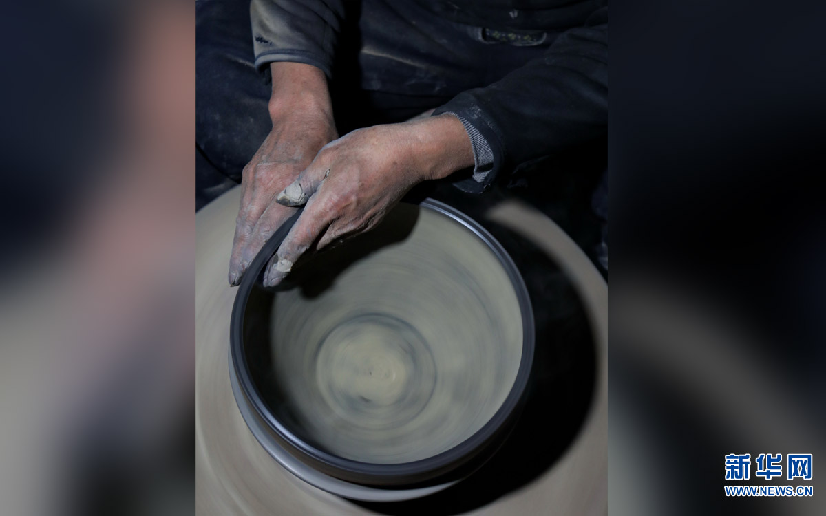 1月13日,在河北張家口蔚縣南留莊鎮白河東村,王啟杰在拉坯。