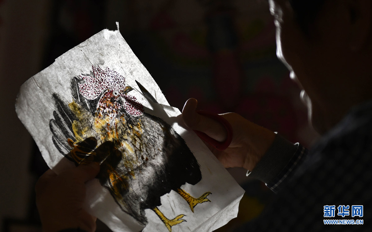 1月4日,在位于天津市古文化街的工作室里,魏國秋剪出繪好的“雞年”風箏。