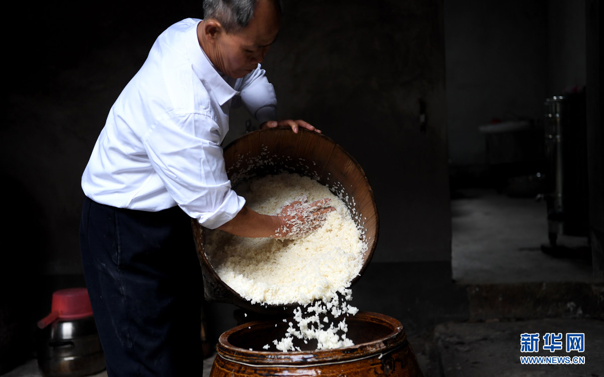 1月11日,黃保豐在祠堂內釀造米酒。臘月里,福建省龍巖市連城縣芷溪村一座幾代傳承的祠堂大院里,酒香濃郁更勝往常。在這里,黃保豐師傅用傳統手藝釀造客家米酒,為電商平臺的“年貨節”活動忙碌準備著。黃保豐自1980年起就在村里釀酒,30多年來,他的生活幾乎一成不變——早上6點多起來生火,上鍋蒸制浸好的糯米,然后保持爐灶里的火一整天不熄滅。曾經,米酒深受人們喜愛,村里年節慶賀、喜事喪事,都要用到米酒,黃保豐一年釀酒能用掉3萬斤米。近些年,傳統米酒的生意卻漸漸慘淡下來。 2013年,芷溪村村民楊天吉在廈門打拼10年后,特別想念家鄉的米酒,回到家鄉拜訪釀酒老師傅黃保豐,卻發現他的生意已經快做不下去了。楊天吉便與黃保豐共同改良制作工藝,釀出“新派”甜米酒,推出檸檬、桂花等新口味,并成立網上酒鋪“酒狐”,通過淘寶等互聯網渠道銷售客家傳統手工米酒。他還利用微博、微淘等社交類互聯網平臺,介紹客家傳統文化。目前,“酒狐”的年銷量達數萬瓶。面對新的消費習慣,人們抓住互聯網電商的發展機遇,開辦網絡店鋪,積極利用“淘寶年貨節”等促銷活動,讓傳統手藝和手工產品在互聯網時代煥發出新的活力。新華社記者 金良快 攝