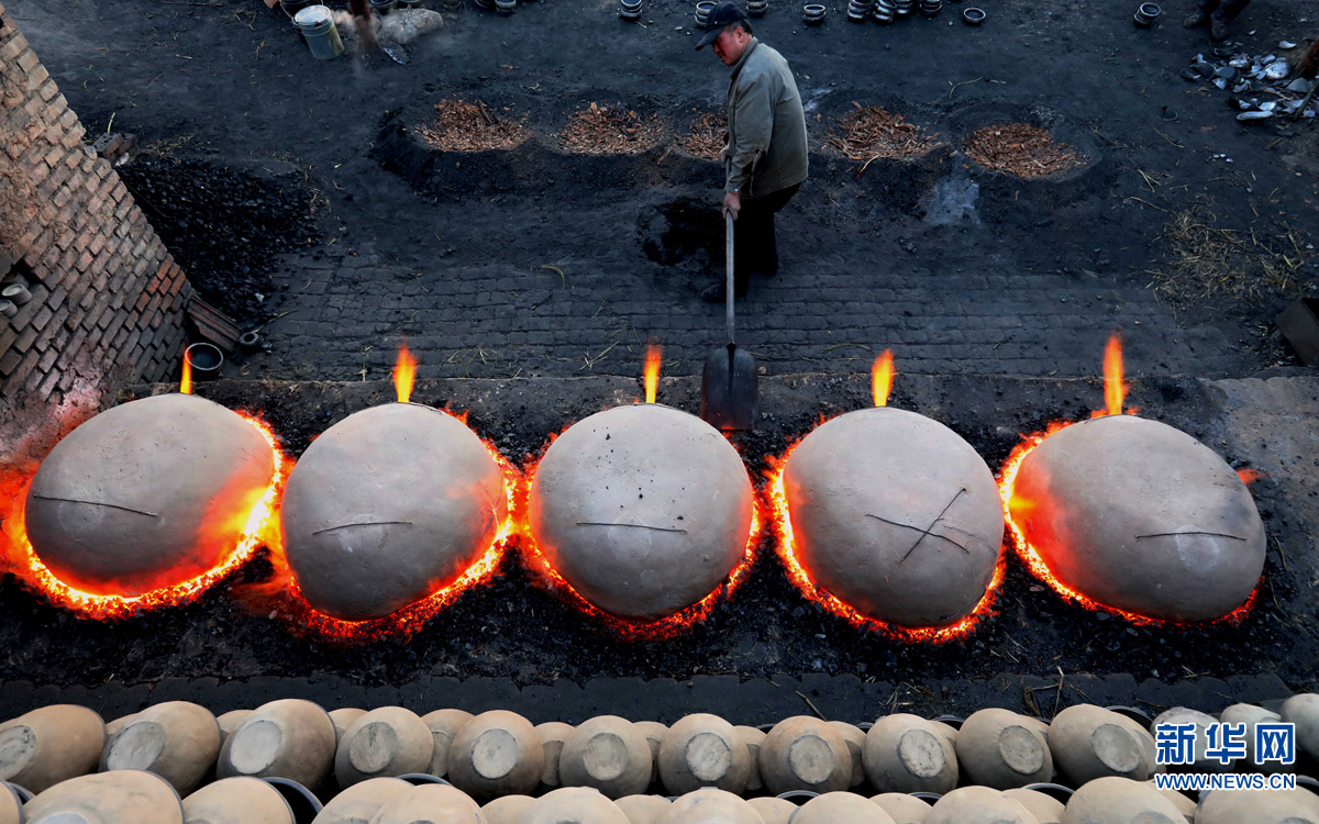1月13日,在河北張家口蔚縣南留莊鎮白河東村,王啟杰在青砂器燒制爐前工作。65歲的王啟杰是白河東村一帶青砂器作坊“掌門人”、蔚州青砂器王氏家族的第四代傳承人,自幼跟父親學習青砂器制作,堅持用傳統手藝燒制青砂器至今。河北省非物質文化遺產項目——蔚縣青砂器是當地傳統民間手工藝器皿,歷史悠久,俗稱砂鍋、砂壺、砂吊等,是熬中草藥、燒水、做飯、煮肉、熱酒的上好器皿。河北張家口蔚縣南留莊鎮白河東村一帶是蔚縣青砂器的發源地。當地山上有豐富的天然瓷土,其土質有黏性,細膩、柔軟、可塑性強,俗稱“矸子土”,是制作青砂器的天然資源。從碾碎“矸子土”到拉坯,再到燒制出成品,一件蔚縣青砂器的制作,需要大量繁瑣的工序。在燒制過程中,查看燒制的火候又稱“看火”,是個重要環節——“看火”是否準確,直接決定青砂器燒制質量的好壞,這個“絕活”一般是由燒制青砂器的傳承人一輩一輩傳下來的。新華社記者 楊世堯 攝