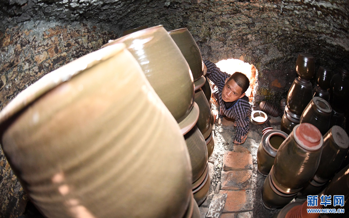 1月5日,在廣西賓陽縣鄒圩鎮下窯村,鄒圩陶器制作技藝傳承人顏長希在窯里查看已經燒制好的陶瓷產品。廣西賓陽縣鄒圩陶瓷制作已有200多年歷史,制作時采用本地特有的紅泥,經過采泥、練泥、制坯、晾坯、裝窯、燒制、出窯等多道工序,工藝考究復雜,被列入廣西非物質文化遺產名錄。目前,擁有123戶700多人的下窯村,近70%的村民從事陶瓷生產。近年來,由于受到鐵、塑料等同類產品的沖擊,鄒圩陶器產品的銷售市場不斷滑坡。在當地有關部門的引導扶持下,當地陶藝師傅不斷摸索創新,開發研制更多門類的產品,諸如陶瓷電茶壺、陶瓷電飯鍋等,適應市場的需求。他們還在探索將傳統手工藝與體驗式鄉村游結合,讓百年陶藝重煥生機。新華社記者 陸波岸 攝