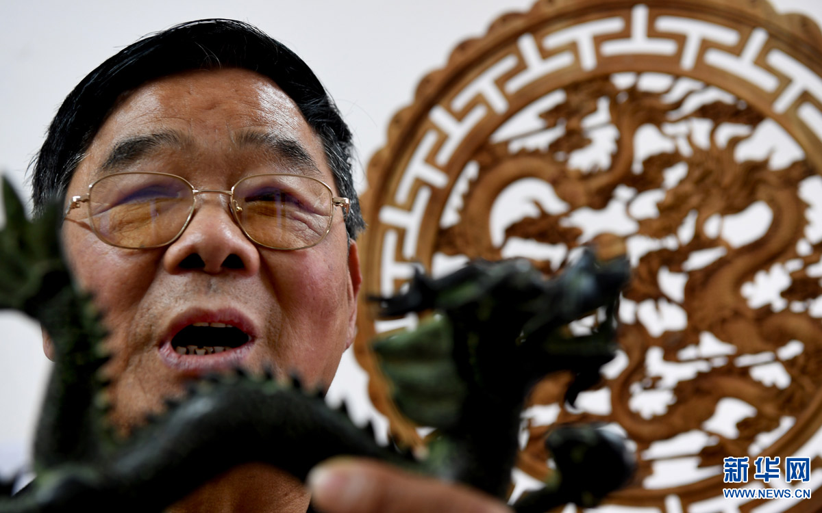 1月15日,閆克元在展示他收集的有關龍的藏品。陜西省漢中市漢臺區龍江文化站黨支部書記閆克元,經過十幾年努力與探索,傳承發展當地的舞龍技藝,豐富基層群眾精神文化生活,帶動村民發展文化產業,被鄉親們親切地稱為“龍的傳人”。 2003年,閆克元牽頭成立“龍江飛龍藝術團”。他130余次登門拜訪當地50多名制作龍舞道具、表演龍舞技藝的老藝人,用錄音、錄像、拍照等形式整理出大量資料,并通過展覽和培訓進行推廣。藝術團由成立最初的50人壯大到如今的200多人,年演出180余場,表演節目從單一的舞龍發展到彩龍、草龍、板凳龍等龍舞系列節目,演出范圍從漢中擴展到省內外。在他的推動下,龍江鎮26個村先后建起了民間藝術表演隊,表演內容涵蓋舞龍、舞獅、社火、彩船、大秧歌等十幾個種類,每年演出超過700場。新華社記者 陶明 攝