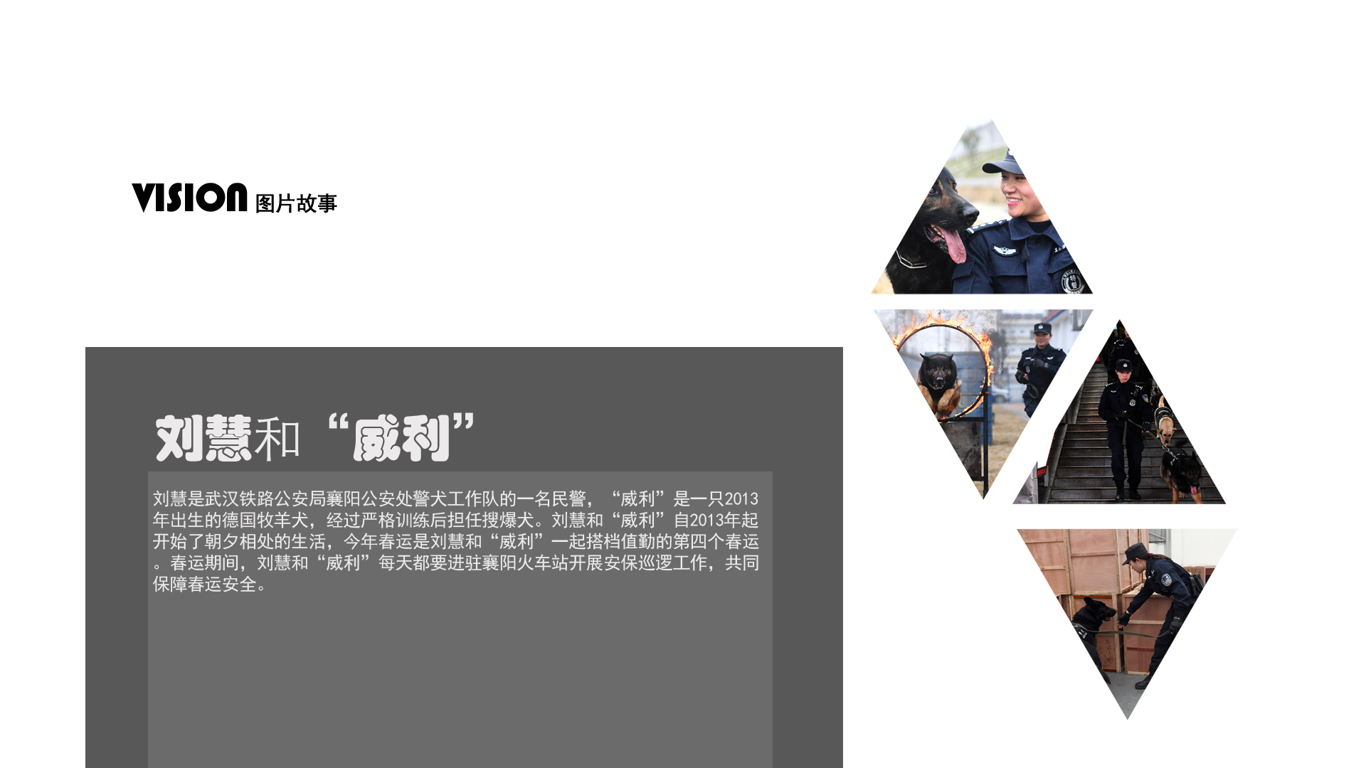 2月5日,劉慧和“威利”在警犬基地玩耍。劉慧是武漢鐵路公安局襄陽公安處警犬工作隊的一名民警,“威利”是一只2013年出生的德國牧羊犬,經過嚴格訓練后擔任搜爆犬。劉慧和“威利”自2013年起開始了朝夕相處的生活,今年春運是劉慧和“威利”一起搭檔值勤的第四個春運。春運期間,劉慧和“威利”每天都要進駐襄陽火車站開展安保巡邏工作,共同保障春運安全。 新華社記者 程敏 攝