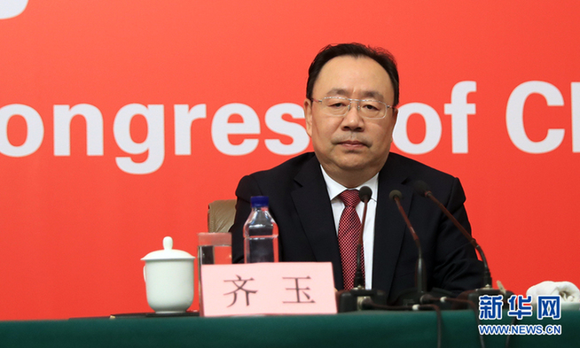??? 10月19日,十九大新聞中心舉行記者會,邀請中紀委、中組部負責人介紹黨的建設和全面從嚴治黨相關情況。圖為中共中央組織部副部長齊玉介紹相關情況。新華網 郝廣鵬攝