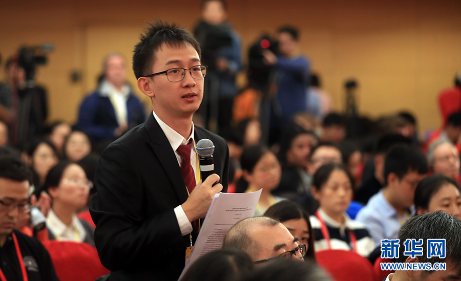 ??? 10月19日,十九大新聞中心舉行記者會,邀請中紀委、中組部負責人介紹黨的建設和全面從嚴治黨相關情況。圖為澳門澳亞衛視記者提問。新華網 郝廣鵬攝