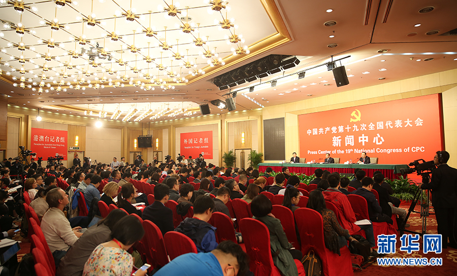 ??? 10月19日,十九大新聞中心舉行記者會,邀請中紀委、中組部負責人介紹黨的建設和全面從嚴治黨相關情況。圖為記者會現(xiàn)場。新華網(wǎng) 郝廣鵬攝