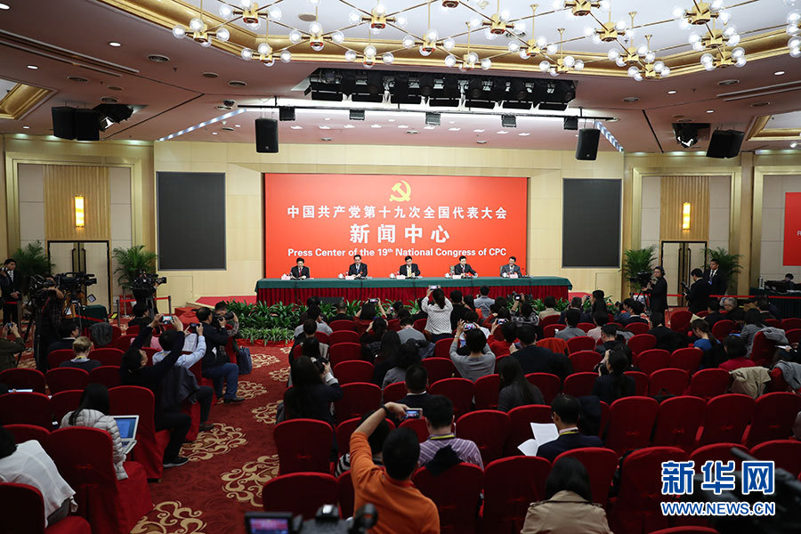 ??? 10月19日,十九大新聞中心舉辦集體采訪,邀請(qǐng)工信和通訊領(lǐng)域代表談走新型工業(yè)化道路。圖為采訪現(xiàn)場。新華網(wǎng) 郝廣鵬攝