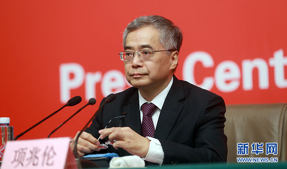 10月20日,十九大新聞中心舉行記者會,邀請中宣部、中央文明辦、文化部、新聞出版廣電總局相關負責人介紹加強思想道德和文化建設情況,并回答記者提問。圖為文化部副部長項兆倫向記者介紹情況。新華網 郝廣鵬 攝