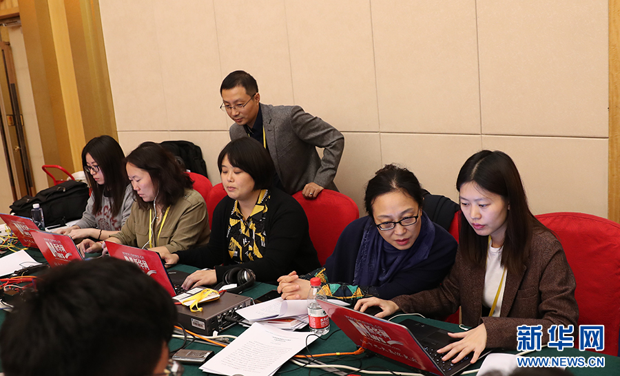 ??? 10月20日,十九大新聞中心舉辦集體采訪活動,主題為“文化發展開創新局面”。圖為新華網在現場直播。新華網 陳杰攝