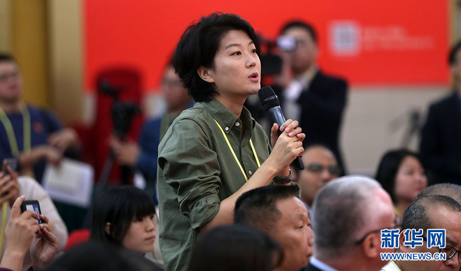 ??? 10月20日,十九大新聞中心舉辦集體采訪活動,主題為“實施創(chuàng)新驅動發(fā)展戰(zhàn)略”。圖為中國國際廣播電臺記者提問。新華網 郝廣鵬攝
