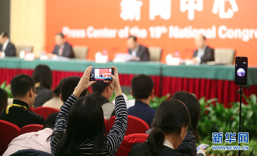 ??? 10月21日,十九大新聞中心舉辦記者招待會,邀請國家發展改革委黨組書記、主任何立峰,副主任張勇,副主任寧吉喆介紹以新發展理念為引領,推進中國經濟平穩健康可持續發展有關情況,并回答記者提問。圖為記者招待會現場。新華網 郝廣鵬攝