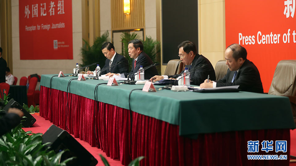 10月21日,十九大新聞中心舉辦記者招待會,邀請國家發展改革委黨組書記、主任何立峰,副主任張勇,副主任寧吉喆介紹以新發展理念為引領,推進中國經濟平穩健康可持續發展有關情況,并回答記者提問。圖為記者招待會現場。新華網 郝廣鵬攝