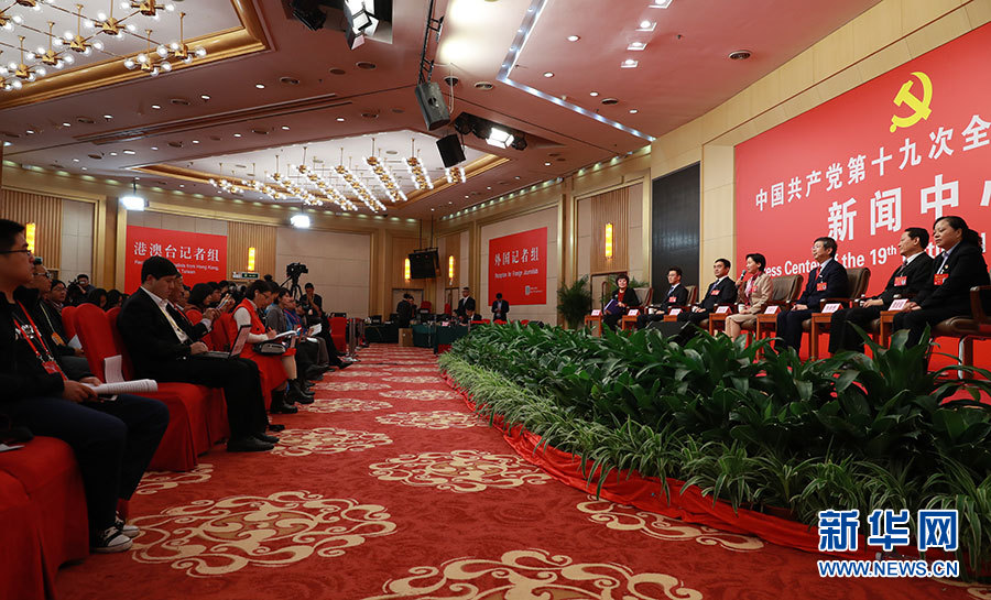 10月22日,十九大新聞中心在梅地亞中心二層新聞發布廳舉辦集體采訪活動,邀請教育領域代表談“教育綜合改革”。圖為集體采訪活動現場。新華網 郝廣鵬攝