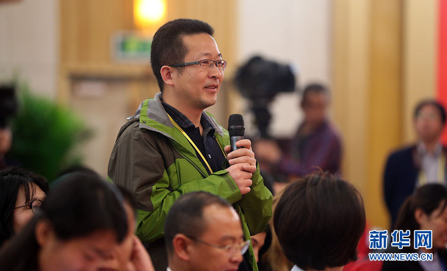 10月22日,十九大新聞中心在梅地亞中心二層新聞發布廳舉辦集體采訪活動,主題為“中國特色強軍之路邁出堅定步伐”。圖為解放軍報記者提問。新華網 郝廣鵬攝