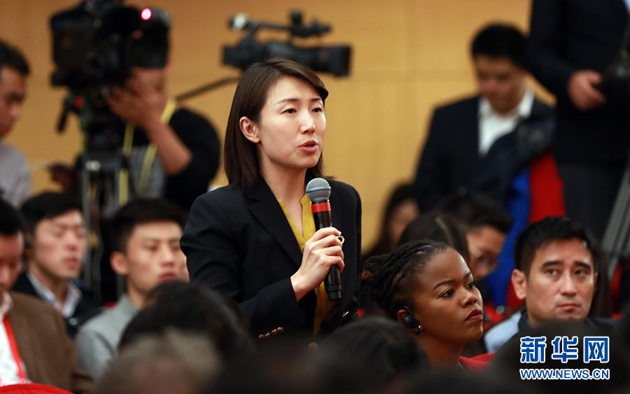 10月23日,十九大新聞中心舉辦記者招待會(huì),邀請(qǐng)中央財(cái)經(jīng)領(lǐng)導(dǎo)小組辦公室副主任楊偉民,環(huán)境保護(hù)部黨組書(shū)記、部長(zhǎng)李干杰介紹踐行綠色發(fā)展理念,建設(shè)美麗中國(guó)有關(guān)情況,并回答記者提問(wèn)。圖為鳳凰衛(wèi)視記者提問(wèn)。新華網(wǎng) 郝廣鵬攝