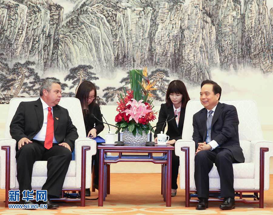 ??? 4月8日,中共中央政治局委員、中華全國總工會主席李建國在北京會見古巴國務(wù)委員會委員、古共中央委員、古巴工人中央工會總書記吉拉特。新華社記者丁林攝