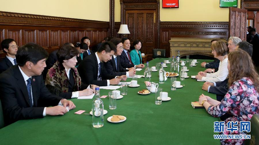 ??? 6月19日,在英國倫敦,中共中央政治局委員、北京市委書記郭金龍(左排,右三)會見工黨代領(lǐng)袖哈曼。應(yīng)英國政府邀請,中共中央政治局委員、北京市委書記郭金龍于18日至22日率中共代表團對英國進行友好訪問。期間,郭金龍會見了商務(wù)、創(chuàng)新和技能大臣賈維德,蘭開斯特公爵郡大臣萊特溫,約克公爵安德魯王子,工黨代領(lǐng)袖哈曼,倫敦市長約翰遜,倫敦金融城市長亞羅,蘇格蘭政府首席大臣、蘇格蘭民族黨領(lǐng)袖斯特金等。新華社記者 韓巖 攝