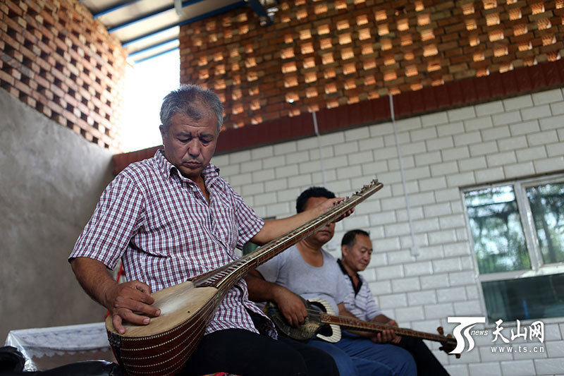 2013年以來,鄯善縣拿出資金,在全縣每個自然村建立農民“文化大院”,給農民提供文化娛樂的場所,十二木卡姆也自然成為大院里必備的節目,老藝人們忙碌了不少。最近正值齋月期間,村民間的文化活動照舊開展,蘇來曼 阿不都時常還要去周圍村里演出,最讓他高興的是,十二木卡姆這門古老的藝術,在今天依舊被大家重視和喜愛,這一點對于他來說,比金錢更重要。“只要大家還喜歡十二木卡姆,在平日里能見到它,它的傳承和發展就有不竭動力?!?蘇來曼 阿不都說。