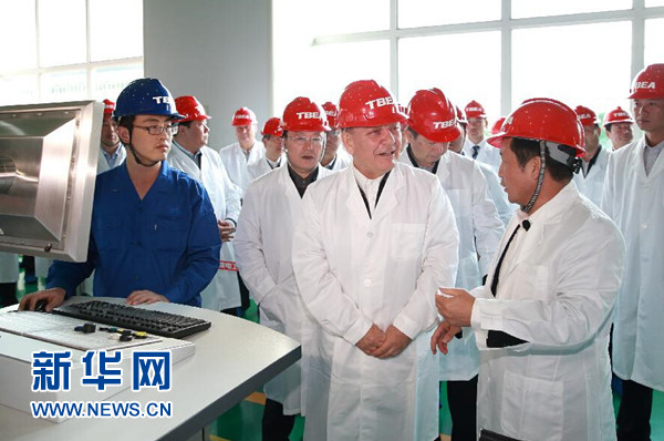 ????9月27日,全國人大常委會副委員長、中央代表團副團長艾力更·依明巴海率三分團在兵團第八師石河子市、昌吉回族自治州看望慰問當地各族干部群眾。這是艾力更·依明巴海在新疆昌吉回族自治州參觀我國輸變電行業的龍頭企業特變電工股份有限公司的特高壓變壓器廠,與一線工人交流。新華社記者 丁海濤 攝
