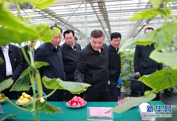 ????9月28日,全國人大常委會副委員長、中央代表團副團長艾力更·依明巴海率中央代表團三分團在昌吉回族自治州、烏魯木齊市看望慰問當地各族干部群眾。這是艾力更·依明巴海在昌吉國家農業科技園區新疆農業博覽園考察。新華社記者丁海濤攝