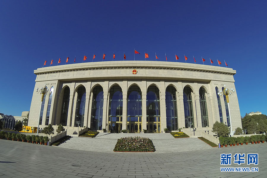 ??? 10月1日,慶祝中華人民共和國(guó)成立66周年暨新疆維吾爾自治區(qū)成立60周年大會(huì)在新疆人民會(huì)堂舉行。圖為新疆人民會(huì)堂外景。新華網(wǎng)記者 郭小天 攝