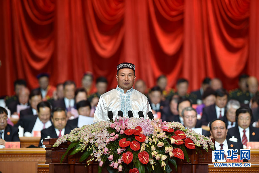 牧民代表昭蘇縣洪納海鄉阿克塔斯村牧民阿依特江·帕爾曼發言
