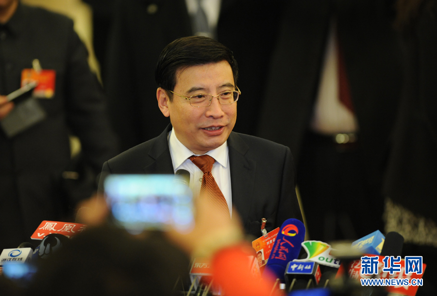 ???? 3月5日,第十二屆全國人民代表大會第三次會議在北京人民大會堂開幕。這是工業和信息化部部長苗圩接受記者采訪。