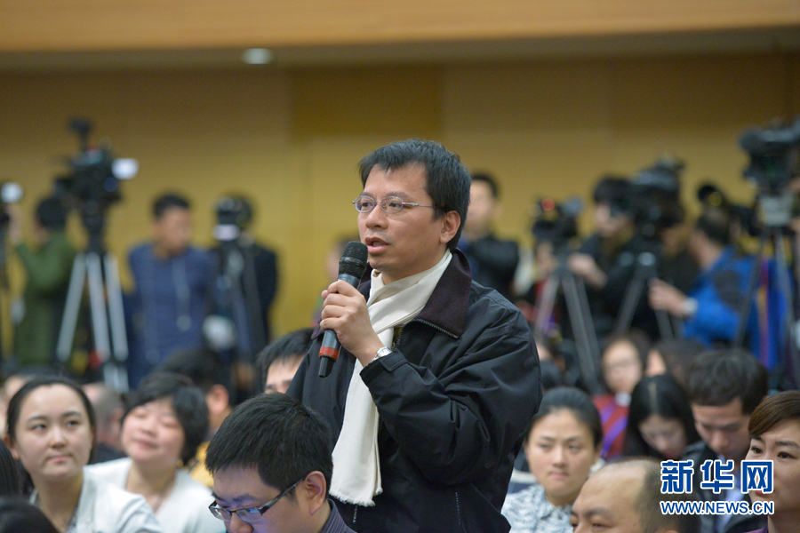 ??? 十二屆全國人大三次會議新聞中心于3月11日10時45分舉行記者會,邀請科技部部長萬鋼就科技改革與發展回答中外記者提問。圖為臺灣工商時報記者提問。新華網/中國政府網 郭小天 攝