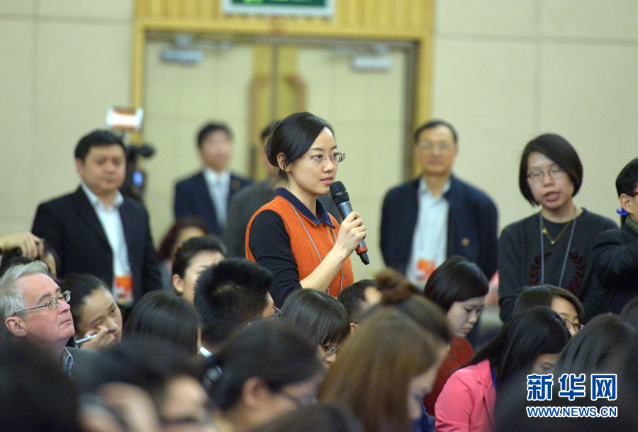 ????十二屆全國人大三次會議新聞中心于3月12日在梅地亞中心多功能廳舉行記者會,邀請中國人民銀行行長周小川,中國人民銀行副行長、國家外匯管理局局長易綱,中國人民銀行副行長潘功勝,絲路基金有限責(zé)任公司董事長金琦就金融改革與發(fā)展回答中外記者提問。圖為新華社和新華網(wǎng)記者提問。新華網(wǎng)/中國政府網(wǎng) 郭小天攝