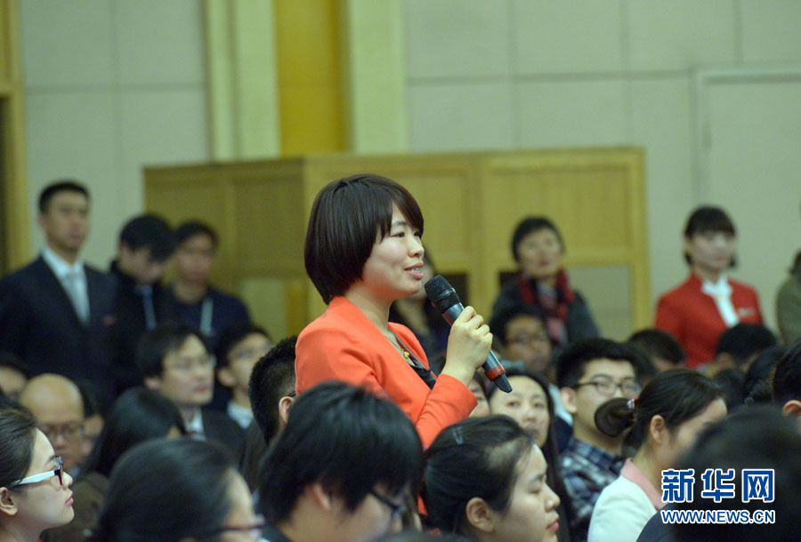 ????十二屆全國人大三次會議新聞中心于3月12日在梅地亞中心多功能廳舉行記者會,邀請中國人民銀行行長周小川,中國人民銀行副行長、國家外匯管理局局長易綱,中國人民銀行副行長潘功勝,絲路基金有限責任公司董事長金琦就金融改革與發展回答中外記者提問。圖為京華時報記者提問。新華網/中國政府網 郭小天攝