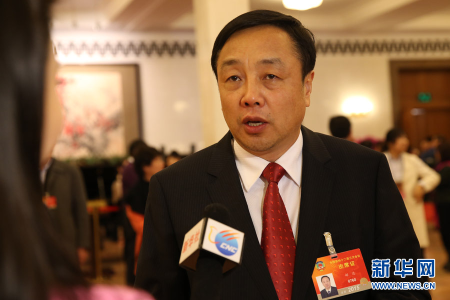 3月13日,全國政協(xié)十二屆三次會議在北京人民大會堂舉行閉幕會。圖為政協(xié)委員郝遠(yuǎn)接受記者采訪。新華網(wǎng)/中國政府網(wǎng) 周柏豫 攝